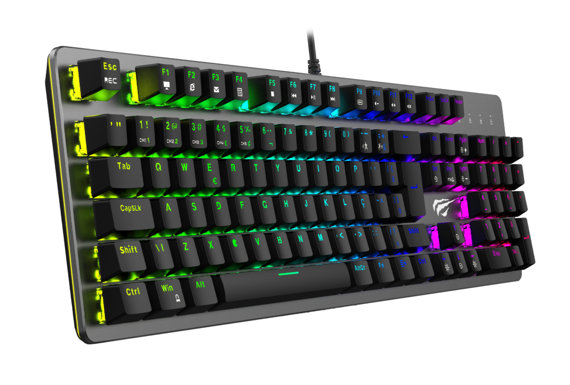 - Combinação das teclas FN+1~5 para armazenar perfis do teclado